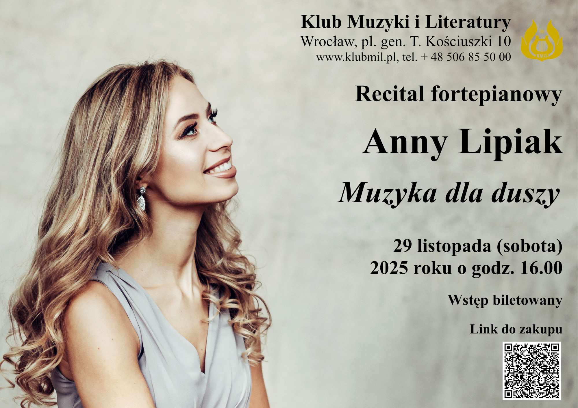 Klub Muzyki i Literatury we Wrocławiu zaprasza na recital fortepianowy Anny Lipiak pt. „Muzyka dla duszy”