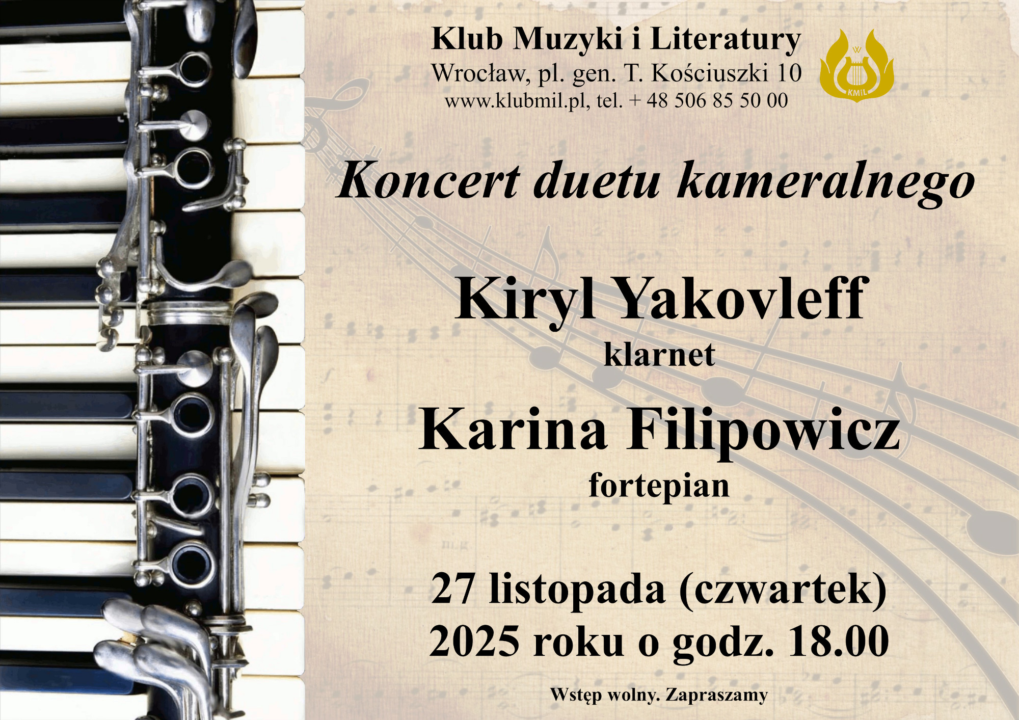 | Klub Muzyki i Literatury we Wrocławiu zaprasza na koncert duetu kameralnego
